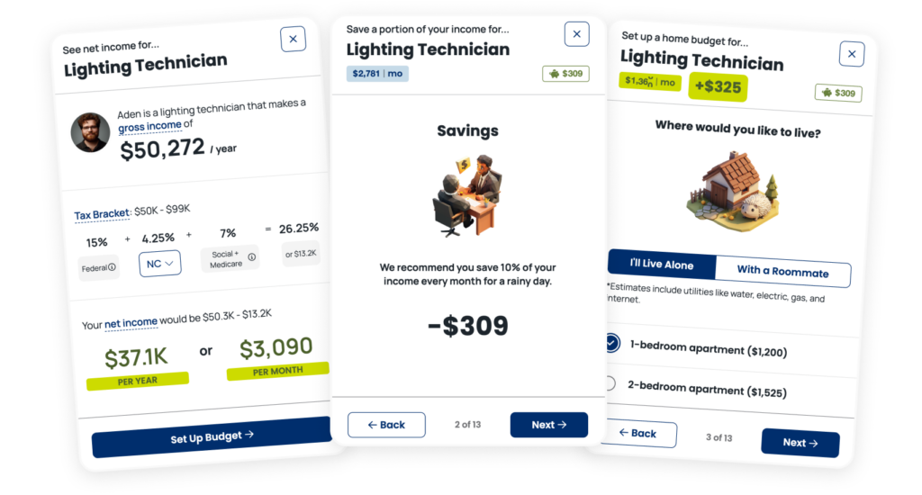 Learners exploring career options now have access to powerful financial planning tools that help them understand the real-world implications of their choices. Learners can develop monthly budgets for their chosen careers, set meaningful financial goals, and build essential knowledge about personal finance—all within the context of the careers that interest them most.