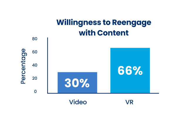 It is fascinating that although people rated video recordings of our simulations both informative and engaging, they were much less willing to rewatch the content than the VR participants. This speaks to the importance of active learning, which Transfr VR simulations offer.